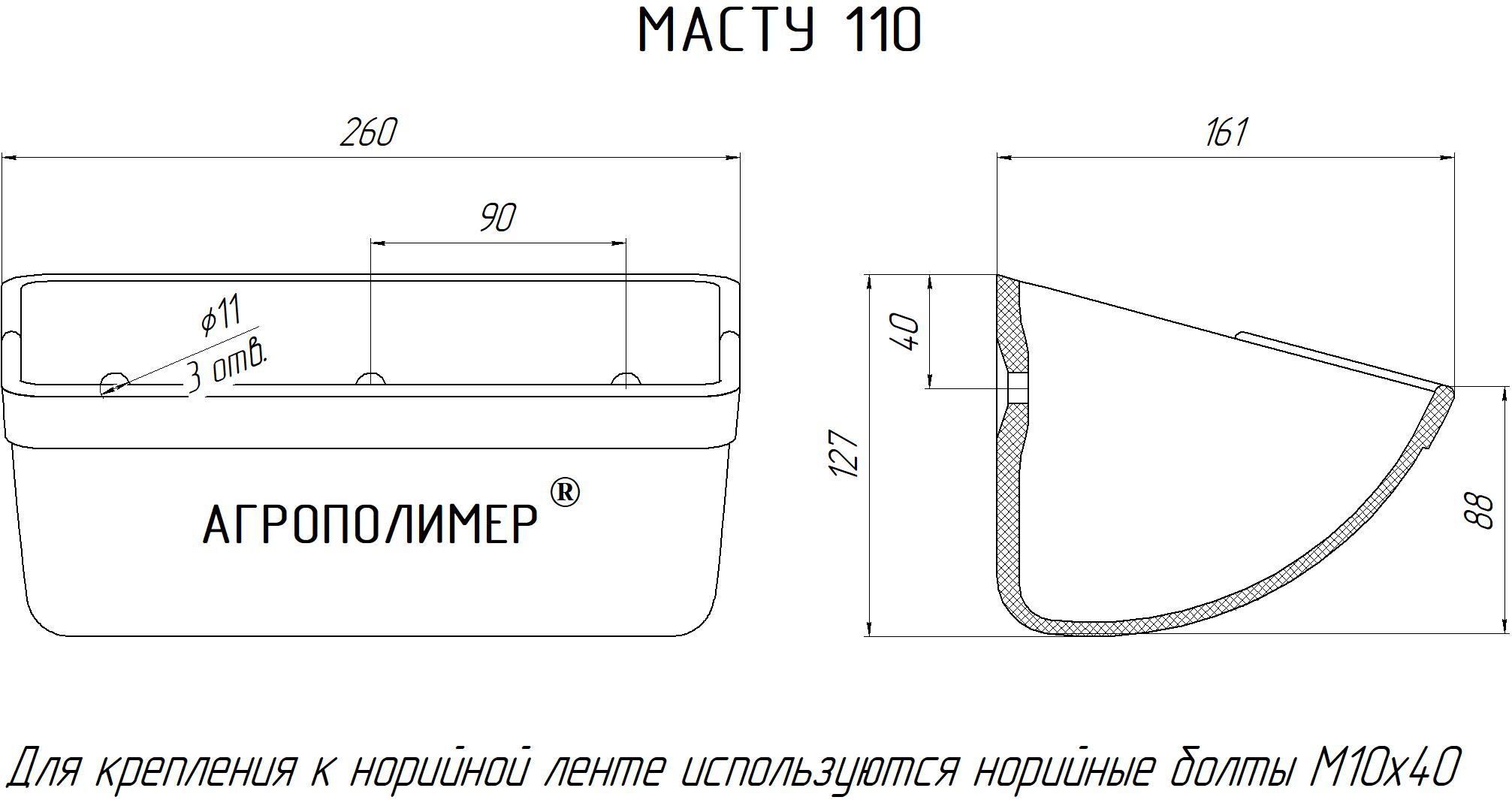 МАСТУ 110 - ширина 260, высота 127, вылет 161 (мм)